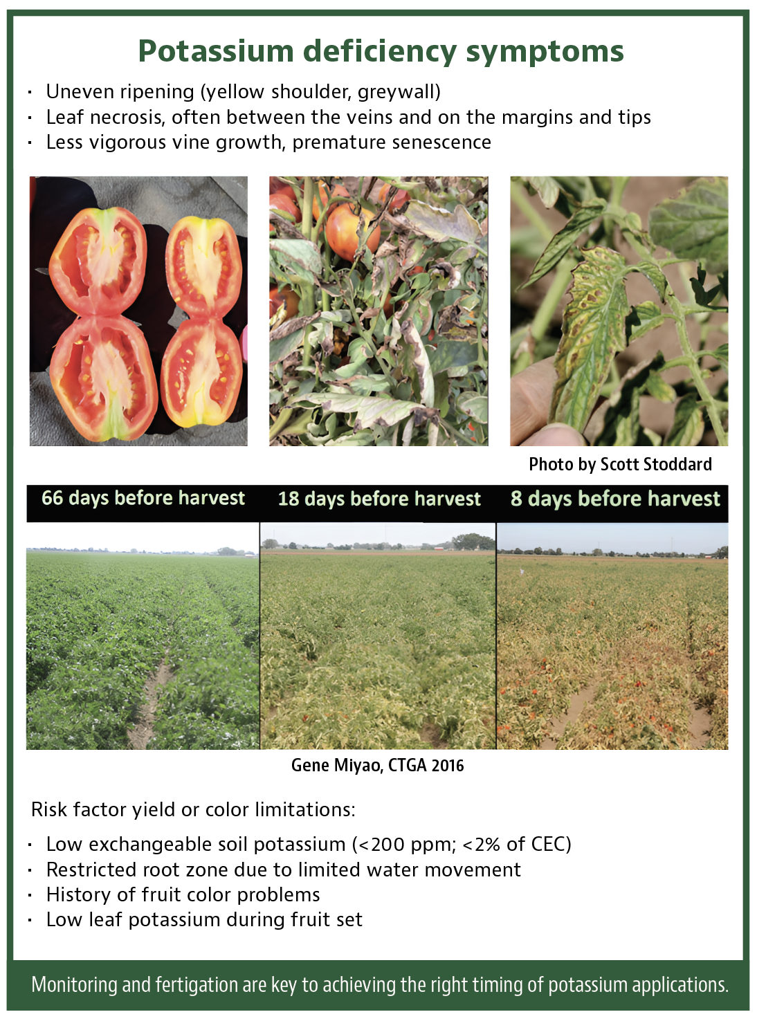 Potassium is important to tomato vine health, fruit set and color. Recognizing where deficiencies may occur and correcting them is complex.