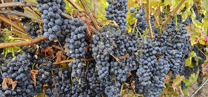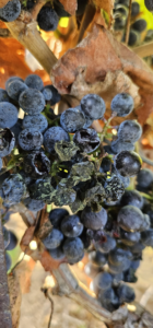 Figure 1. Clusters showing late-season rot symptoms observed on Petit Verdot in the Lodi/Clements area during the 2025 harvest. (Photo credit: C. Starr)